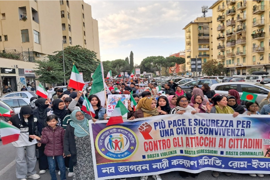 রোমে প্রবাসী বাংলাদেশিদের ওপর হামলার প্রতিবাদে বিক্ষোভ