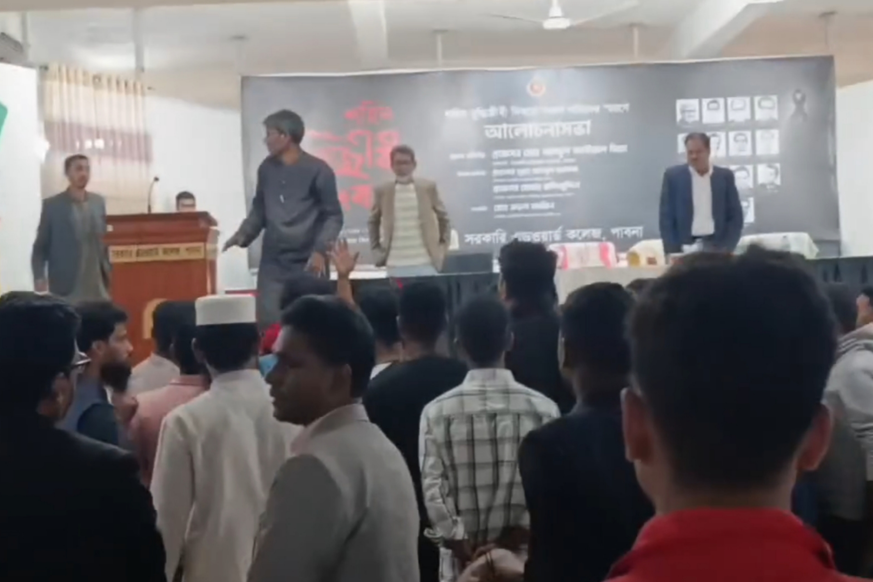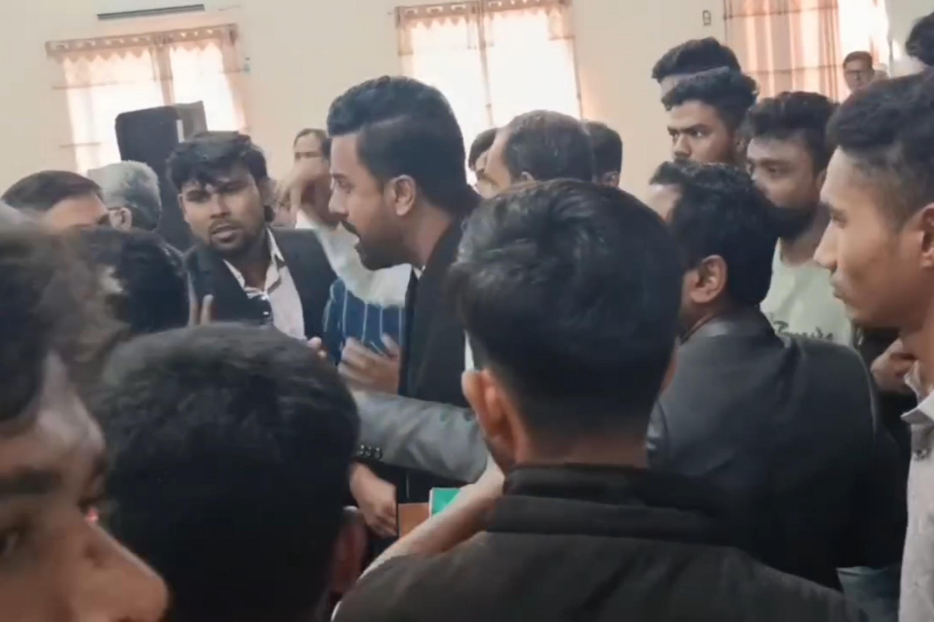 রোববার (১৪ ডিসেম্বর) সকালে সরকারি এডওয়ার্ড কলেজের আব্দুস সাত্তার মিলনায়তনে এই হট্টগোল হয়।