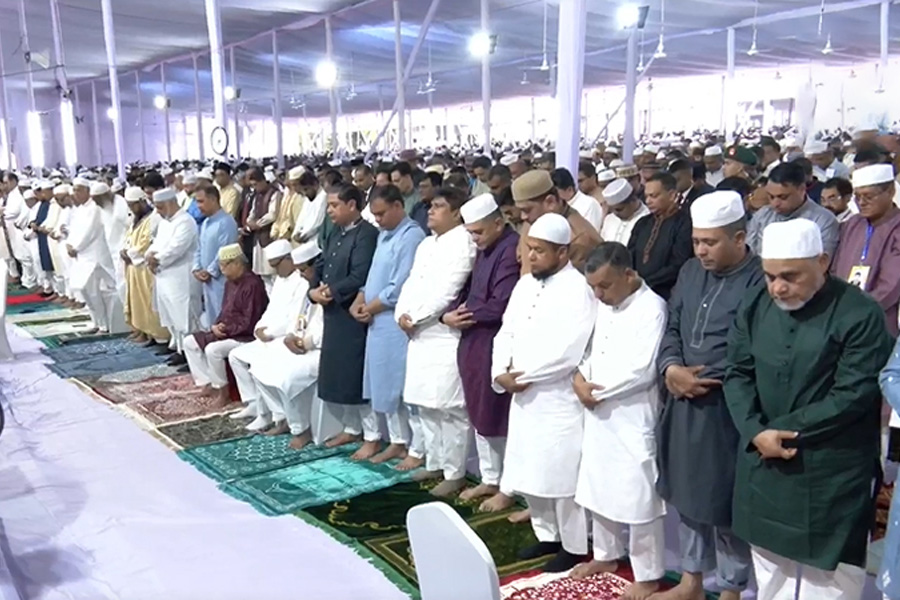 রাষ্ট্রপতি ও প্রধানমন্ত্রীর উপস্থিতিতে জাতীয় ঈদগাহে পবিত্র ঈদুল ফিতর ঈদ জামাত অনুষ্ঠিত হয়েছে। দেশের বিভিন্ন প্রান্ত থেকে আগত হাজার হাজার মুসল্লি একসঙ্গে ঈদের নামাজ আদায় করেন।