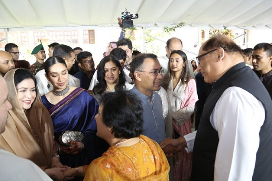 প্রধানমন্ত্রী তারেক রহমান পবিত্র ঈদুল ফিতর উপলক্ষে কূটনীতিক, শিক্ষাবিদসহ দেশের সর্বস্তরের মানুষের সঙ্গে ঈদের শুভেচ্ছা বিনিময় করছেন।