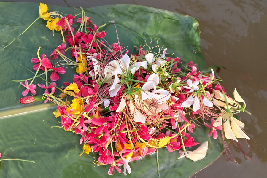 প্রতিবছরের মতো এবারও সূর্যোদয়ের আগেই বিভিন্ন বয়সী মানুষ নিজস্ব ঐতিহ্যবাহী পোশাক পরে ফুল হাতে নদীর পাড়ে সমবেত হন। পরে তারা ‘জলবুদ্ধ’ ও ‘মা গঙ্গাদেবী’র উদ্দেশ্যে ফুল নিবেদন করেন। এ সময় তারা অতীত বছরের ভুলত্রুটির জন্য ক্ষমা প্রার্থনা করেন এবং নতুন বছরে সুখ, শান্তি ও সমৃদ্ধির কামনা জানান।