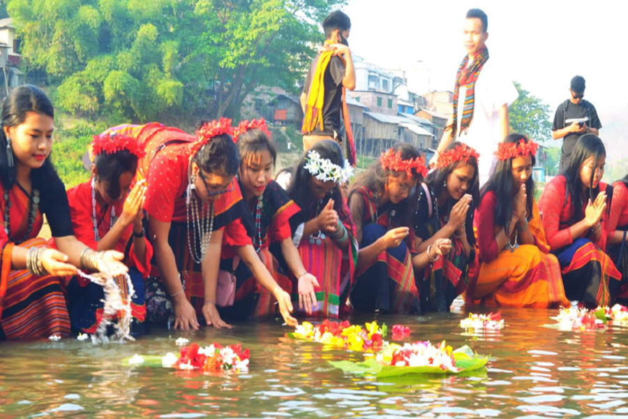 সাঙ্গু নদীতে ফুল নিবেদনের মধ্যদিয়ে শুরু বিজু-বিষু উৎসব